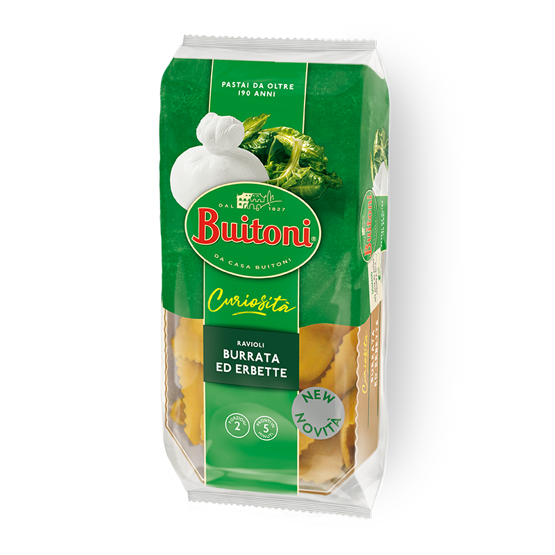 Burrata And Chards Ravioli With Sausage & Tomato Sauce