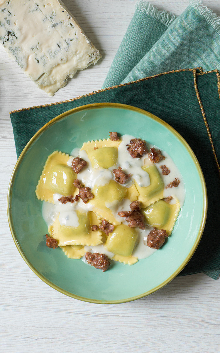 Burrata And Chards Ravioli With Gorgonzola & Cheese Sauce